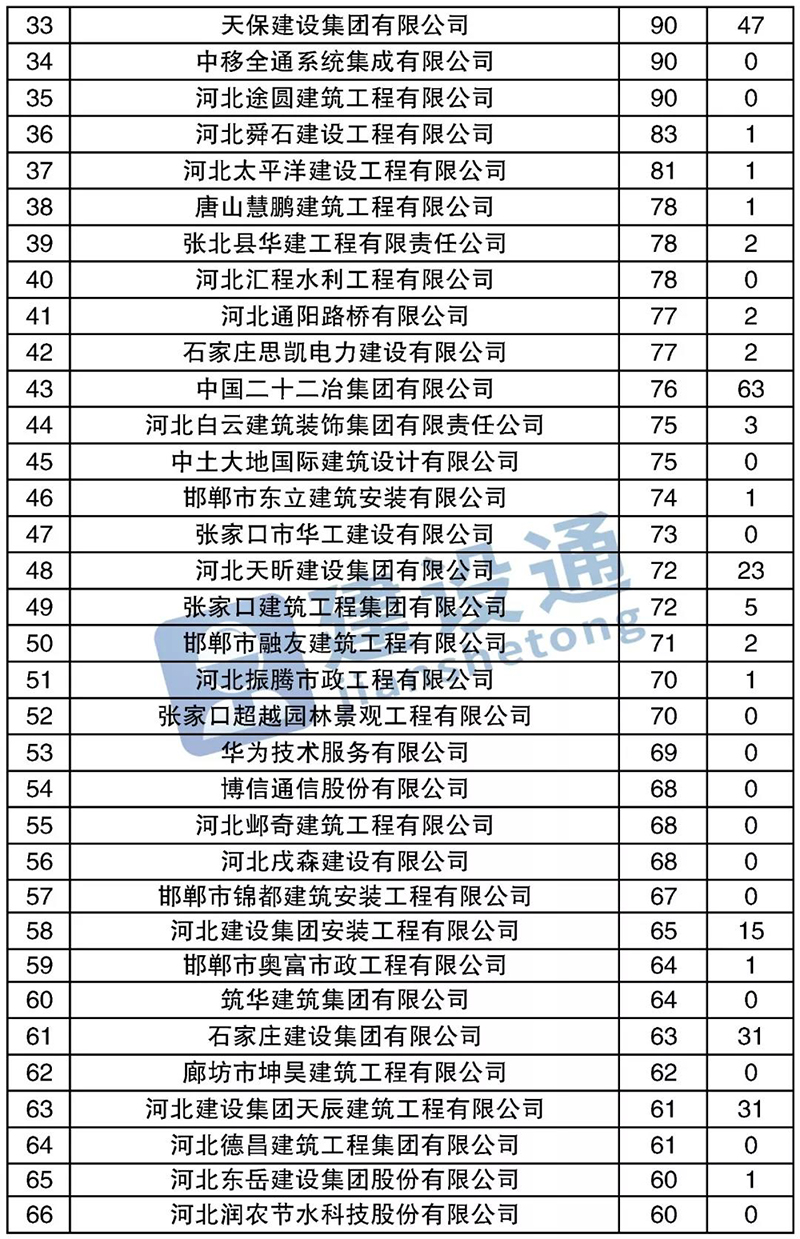 :在2019年,河北建筑施工企業(yè)中標(biāo)數(shù)量達(dá)49662項,同比(與去年同期)6.70%。其中,分列中標(biāo)數(shù)量排行榜前三位。