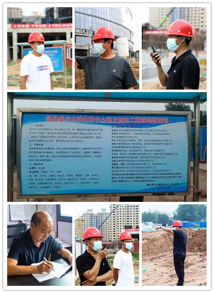 近日,按照縣委縣政府相關(guān)會(huì)議精神要求,梨鄉(xiāng)水城體育中心項(xiàng)目部全面吹響進(jìn)度推進(jìn)沖鋒號(hào),成立中元路泰梨鄉(xiāng)水城體育中心項(xiàng)目青年突擊隊(duì),建立由張運(yùn)堂任總指揮,李振山、馮義、連嶺任副總指揮的搶工期現(xiàn)場(chǎng)指揮部。項(xiàng)目部全體人員上下一心,認(rèn)清形勢(shì)、明確目標(biāo)、制定計(jì)劃、倒排工期、精心調(diào)度、責(zé)任到人,為如期完成工程任務(wù)奠定基礎(chǔ)。