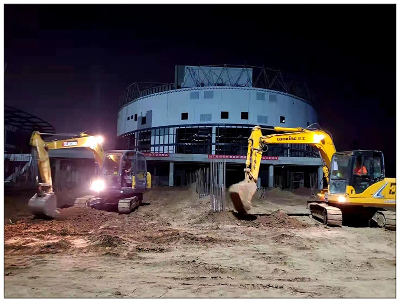 耀眼的燈光打破沉靜的夜晚,混凝土泵送車揮動(dòng)著長(zhǎng)臂氣勢(shì)如虹,挖掘機(jī)、卸土車穿梭在施工道路上讓人應(yīng)接不暇,工人用手中的工具伴隨著車輛的轟隆隆聲,在星空下奏出美妙的“建設(shè)交響曲”,一抹紅色的中元路泰青年突擊隊(duì)隊(duì)旗在燈火下熠熠生輝。由我公司承建的梨鄉(xiāng)水城體育中心項(xiàng)目,處處可見(jiàn)一片熱火朝天的趕工景象。