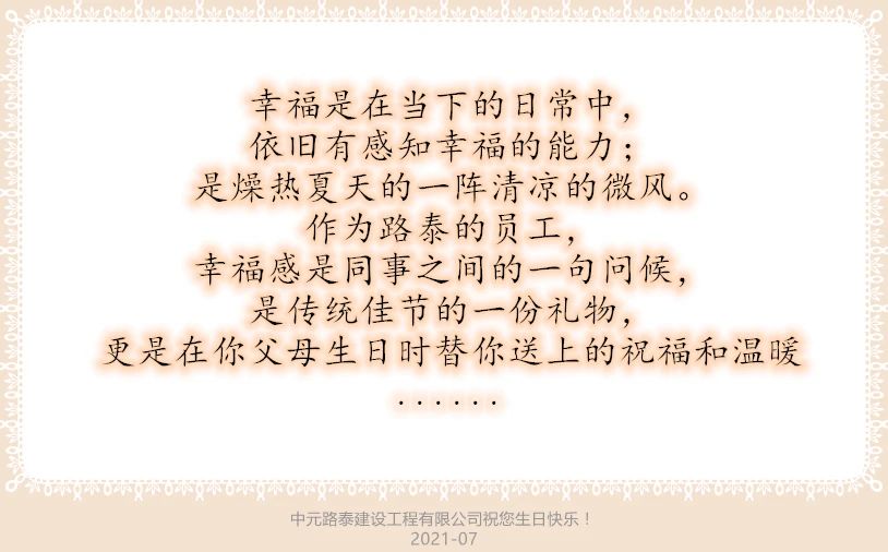 【感恩】中元路泰建設(shè)工程有限公司7月員工父母生日季