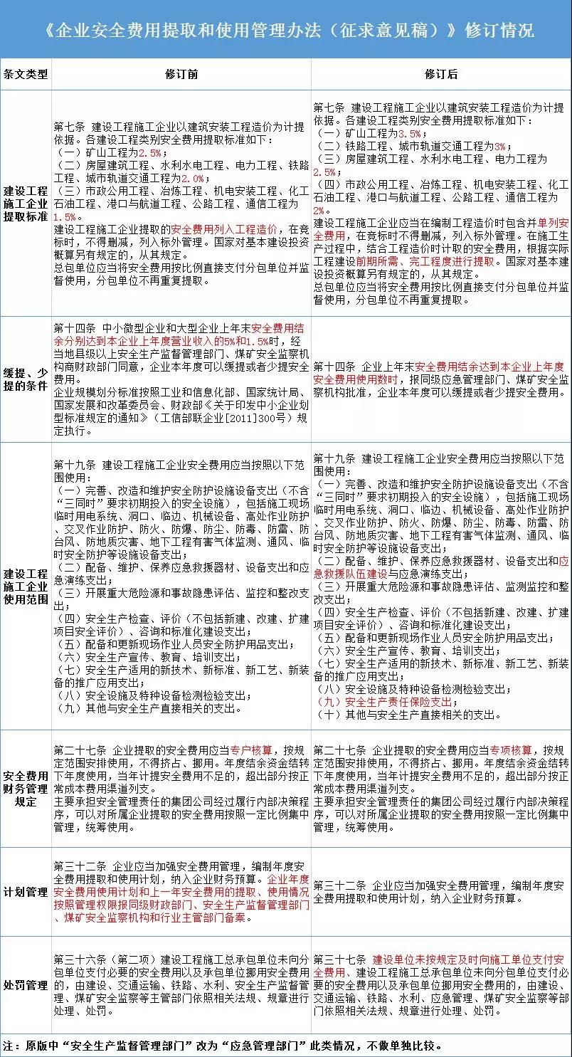 7月8日,應(yīng)急部發(fā)布《企業(yè)安全費(fèi)用提取和使用管理辦法(征求意見稿)》。新《辦法》提出:
