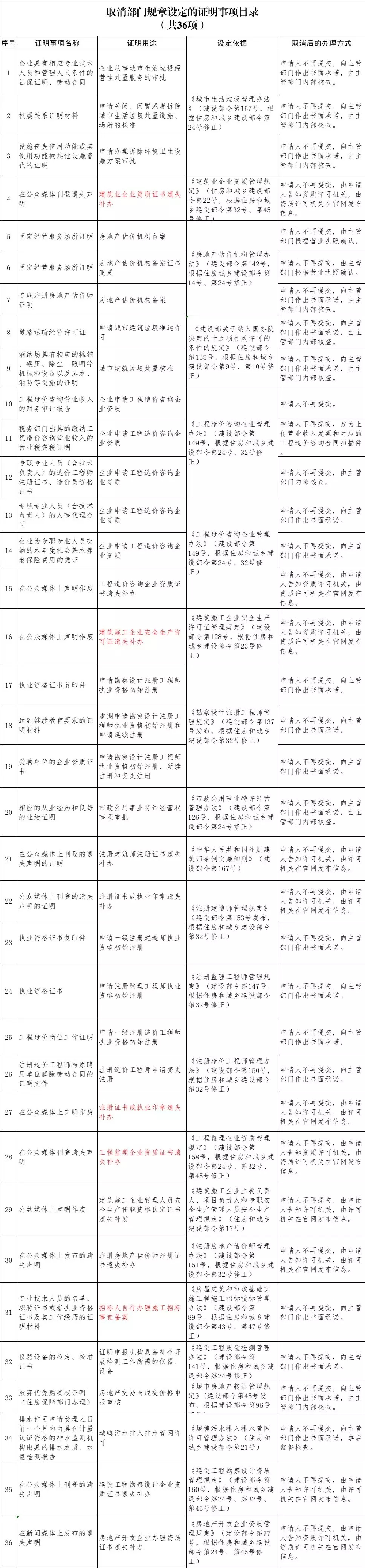剛剛住建部下發(fā)通知,自9月16日起,再取消一批證明事項,涉及資質(zhì)、招標(biāo)、執(zhí)業(yè)資格證書等事項證明。
