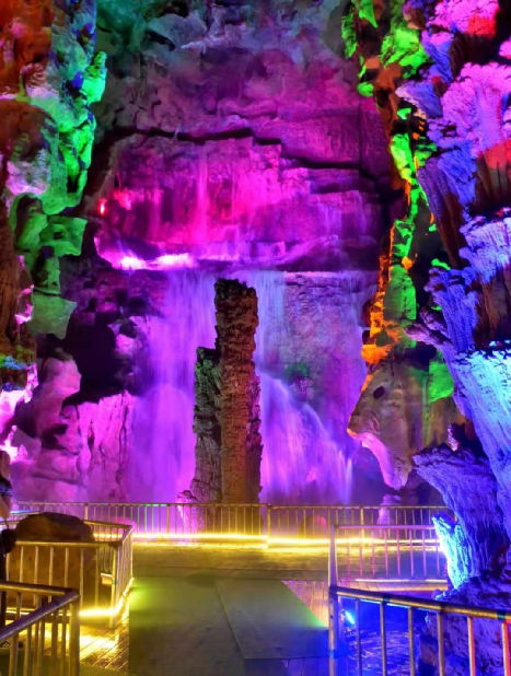 第二天下午,我們來(lái)到了位于泰山和徂徠山兩座山脈斷裂帶的地下龍宮景區(qū),景區(qū)內(nèi)綠樹成蔭,碧草連天,讓人放松身心,擁抱自然。地下又是另一番景象,裂隙深達(dá)數(shù)百米,在這里,我們可以無(wú)節(jié)制的發(fā)揮自己的想象力,驚嘆造化的鬼斧神工。洞內(nèi)每一個(gè)鐘乳石都有著自己億萬(wàn)年的故事,仿佛成長(zhǎng)中的剔透美玉,仿佛生命凝結(jié)于此。水和自然的力量,造就了一幅幅神奇與美妙的畫卷。溶洞內(nèi)常年恒溫16—18攝氏度,是清爽宜人的世外桃源。夢(mèng)幻般的情調(diào),神話的氛圍,嘩嘩的流水如聞仙樂縹緲,坐擁佛身仙影如臨其境。大自然如此充滿人性化的安排怎不令人拍案叫絕。